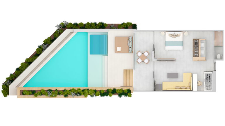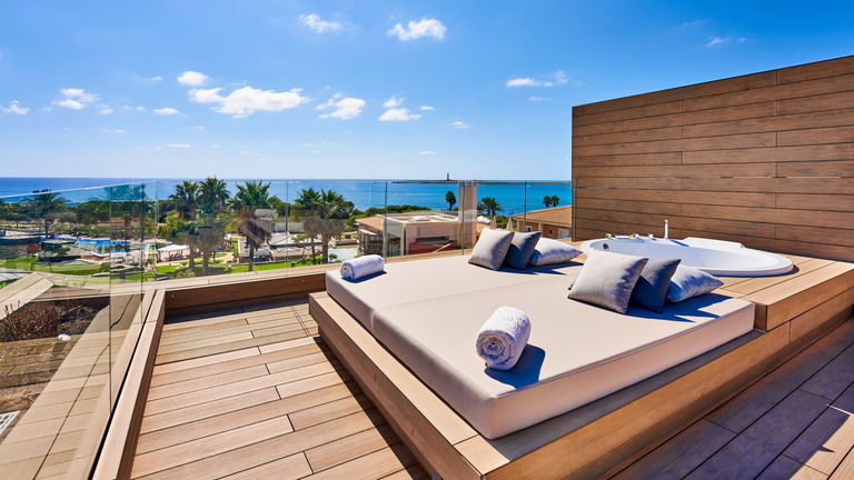 Luxuriöse 121 m2 große Suiten, darunter ein 44 m2 großer privater Pool und eine große Chillout-Terrasse.