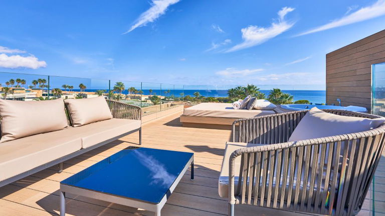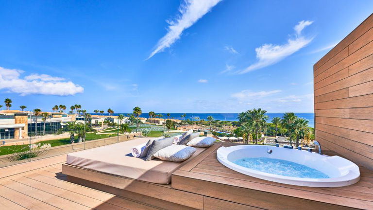 Luxuriöse 92 m2 Suiten, darunter eine 35 m2 große Dachterrasse mit Hydromassage-Mini-Pool, Schlafcouch und mit herrlichem Meerblick.