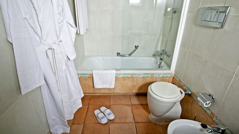 • Bathrobe, slippers and magnifying mirror.