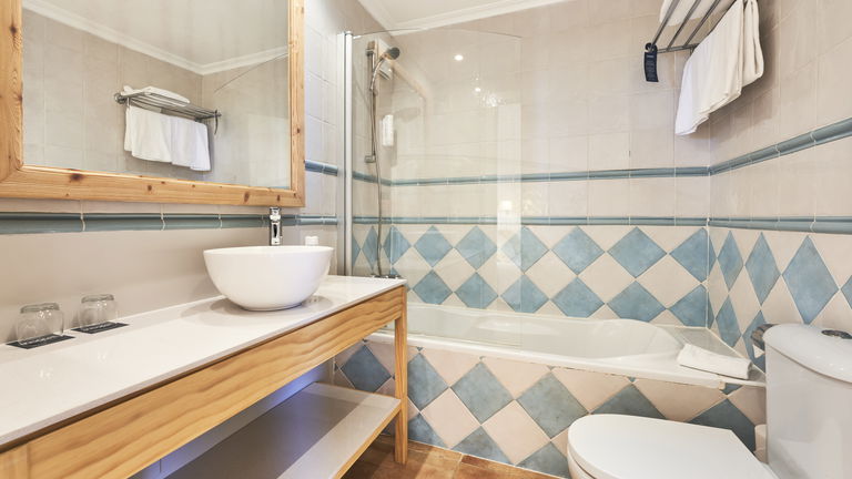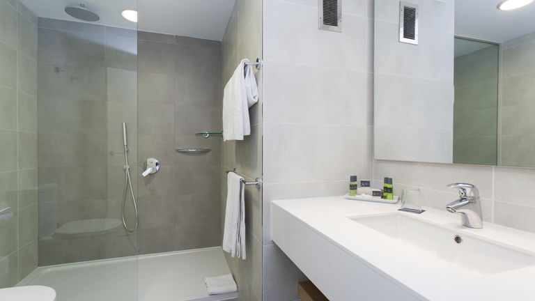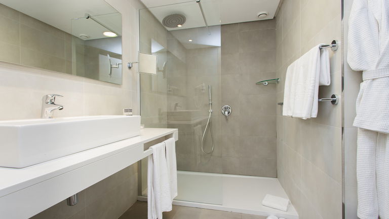 • Bathroom with walk-in rain shower, magnifying mirror, exclusive accessories including bathrobes and slippers, hair dryer and eco bathroom amenities.