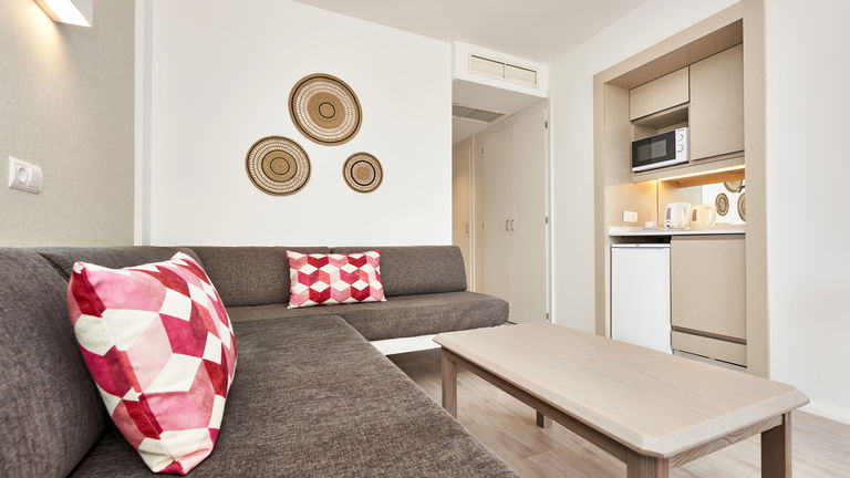 • Living room and bedroom combined with 2 single beds of 2 x 0.95 m, 2 sofa beds.