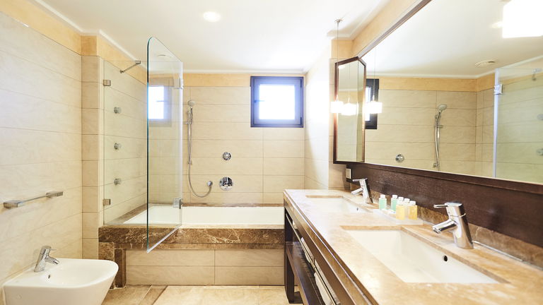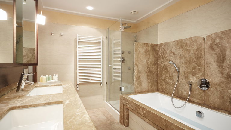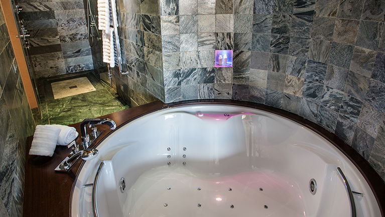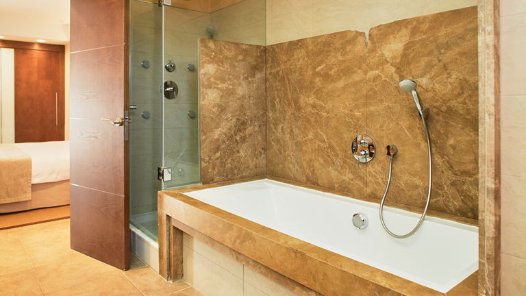 • En-suite bathroom with bathtub and a separate hydro massage shower.