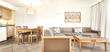 • Living room with two sofa beds, kitchen with two hot plates and fridge, table and chairs, fan, telephone and 43' TV.