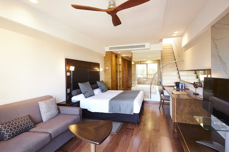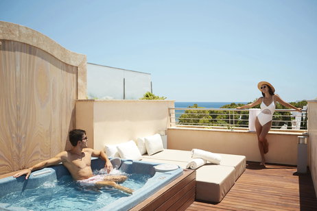 • Solárium privado de 26 m² con una minipiscina de hidromasaje para dos personas, ducha exterior, zona chill-out con daybed y parasol.