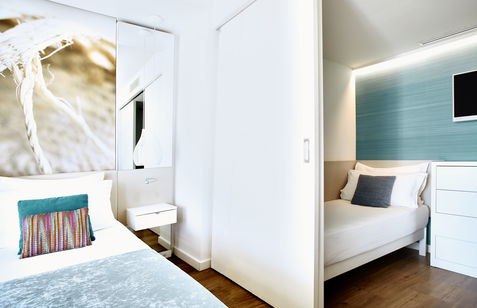 • Area bambini con due letti singoli di 1,90 x 0,90 m, TV a schermo piatto